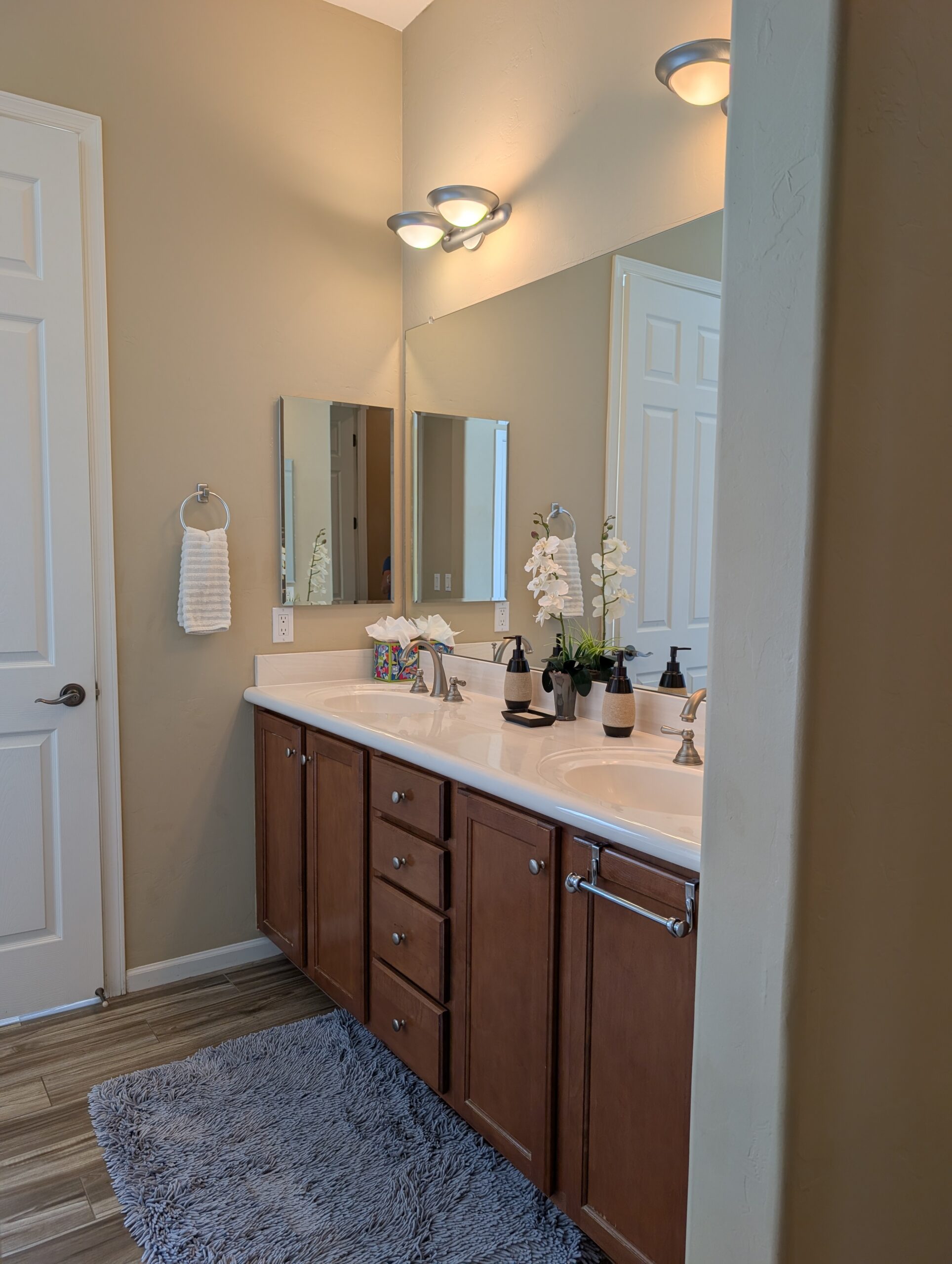 Accommodations: Master Bedroom has KING size bed with master bath containing executive height dual sinks. garden soaking tub, and glass block walk in shower. Walk in closet in master. Smart TV