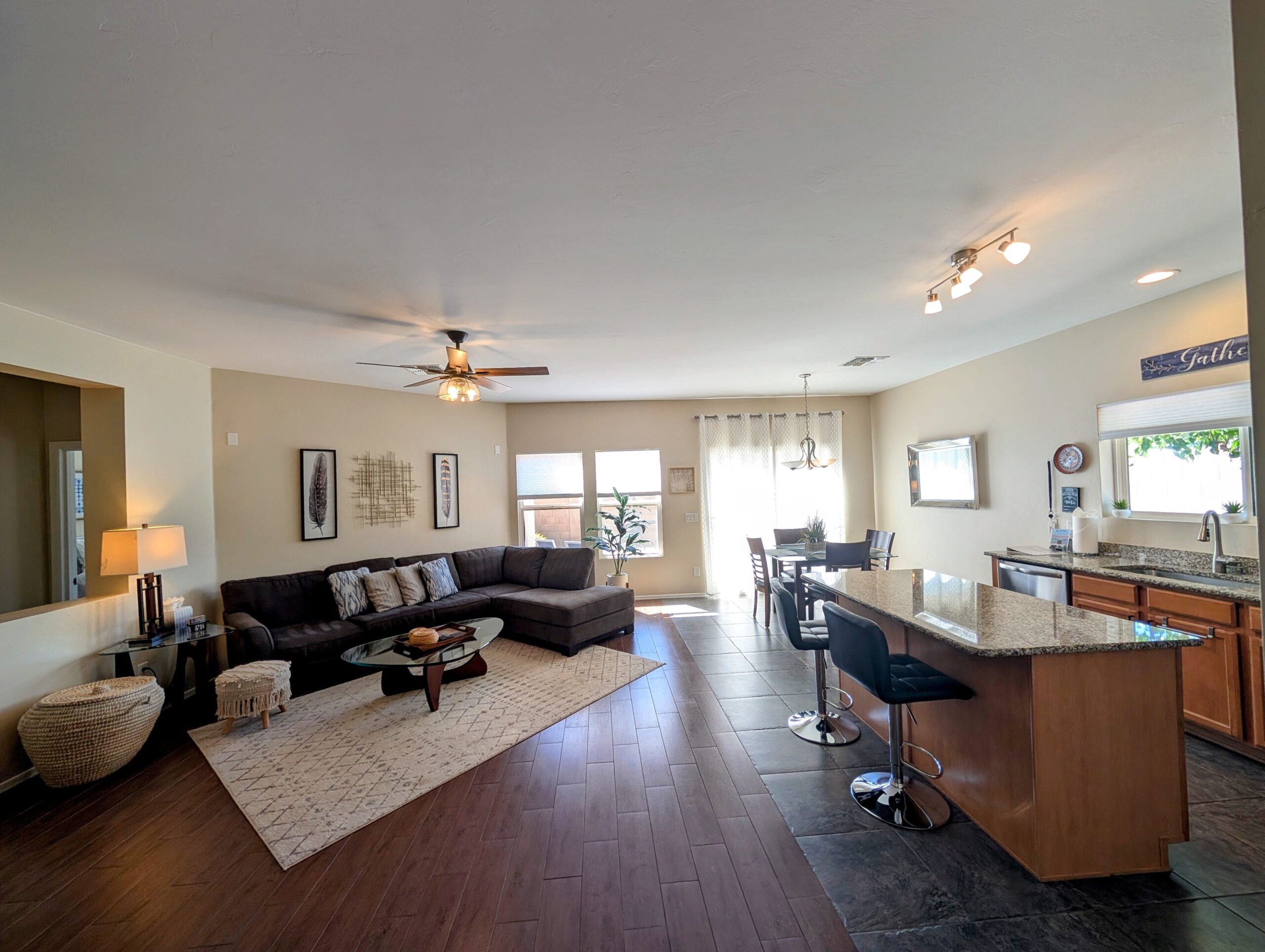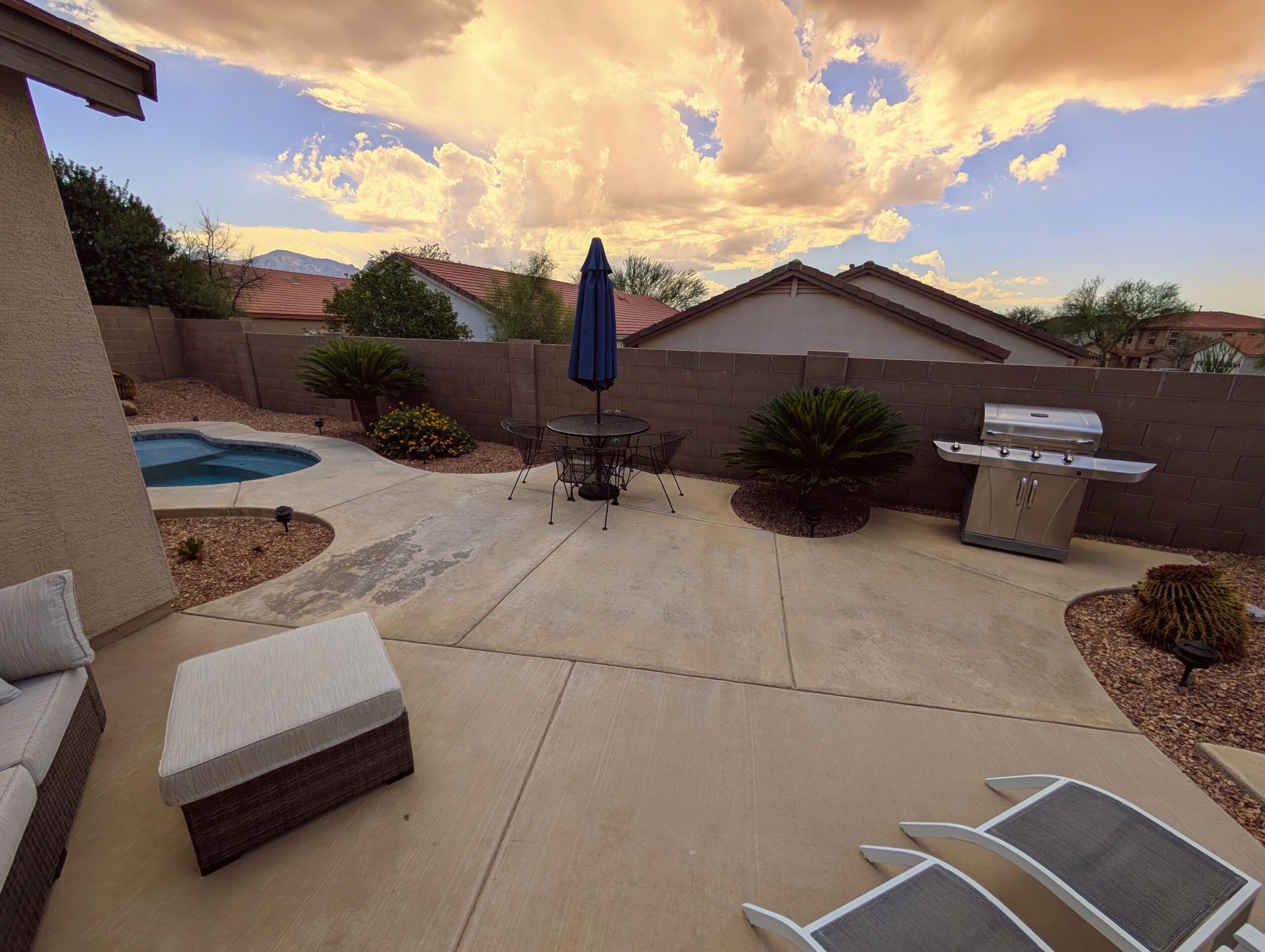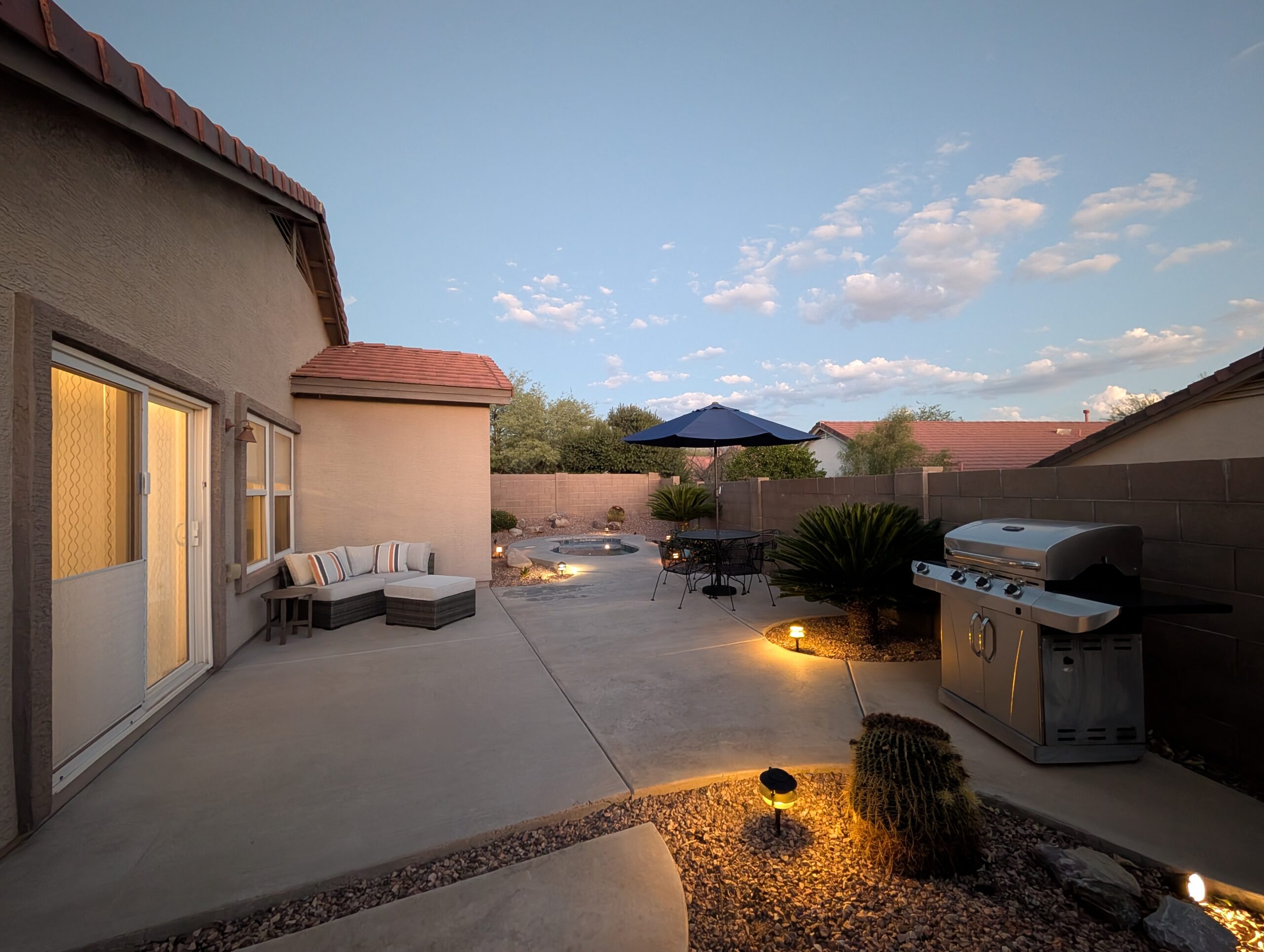 Nicely appointed 2 bedroom, Den, 2 Baths, 2 separate cozy living areas with comfy sectional couches, dining room, breakfast area, and bar. The home is nicely situated on a private corner lot on Cul-De-Sac in Rancho Vistoso. Start your morning or evening in the heated spool in the cozy private backyard, or take a stroll on the Woodshade trail. Stargaze the beautiful Arizona skies from your private jacuzzi. Enjoy your golf game among the many golf courses located in Oro Valley, Marana, and Tucson. 10 minute drive to The Gallery Golf Club at the Ritz Carlton in Dove Mountain or El Conquistador golf course in Oro Valley. Home is located within a 5 minute walk to Hohokam park which includes lighted tennis and basketball courts, playground, and dog park. Enjoy walking or biking along 6 miles of Vistoso Trails Nature Preserve path. Plan a day hiking to Romero Pools at Catalina State park just 5 miles from the house. Mountain biking trails in Oro Valley include Rail X, 50 year trail and Honeybee Canyon. Hiking also found nearby in Honeybee Canyon and Big wash trailhead just minutes away.